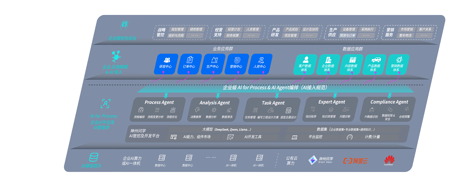 迪威国际问学智车解决方案是一套基于AI技术的汽车行业智能化系统,,,,覆盖从底层算力到顶层AI应用的全栈方案。。。方案由算力层、、、、模型层和应用层组成:算力层,,方案支持多种一体机配置,,,,具备云端灵活部署、、、多云适配以及动态优化计算资源的能力;模型层,,迪威国际问学平台版提供了企业级AI应用一站式构建与管理平台,,,,支持基于后训练强化技术的汽车企业专属模型的训练、、、、评测和运营;应用层,,迪威国际问学DeepSeek版提供包括超级员工、、智能招采、、智能营销、、智能客服、、、、AI for BI等一系列解决方案,,,,可助力汽车行业实现数字化转型,,让管理更智能、、、、响应更敏捷。。